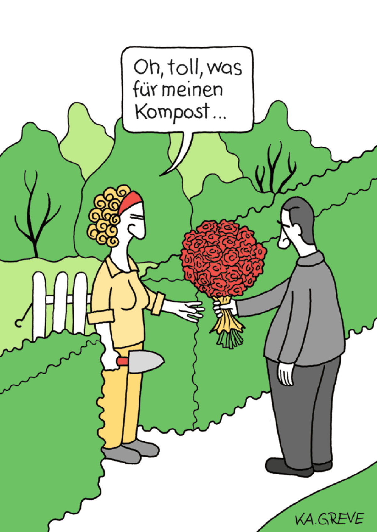 Katharina Greve, 1972 in Hamburg geboren, studierte Architektur an der TU Berlin. Sie lebt als Cartoonistin, Comic-Zeichnerin, Künstlerin, Autorin und Ex-Architektin in Berlin. 2013 sagte sie per Cartoon den Rücktritt von Papst Benedikt voraus.